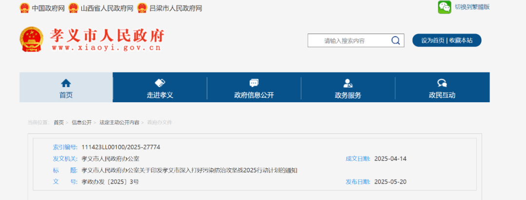 为深入贯彻全国、全省和吕梁市生态环境保护大会精神,全面落实党中央、国务院和省委、省政府及吕梁市委、市政府关于深入打好污染防治攻坚战的决策部署,进一步提升全市生态环境质量,经市政府同意,现将《孝义市深入打好污染防治攻坚战2025行动计划》印发给你们,并就有关事项通知如下: