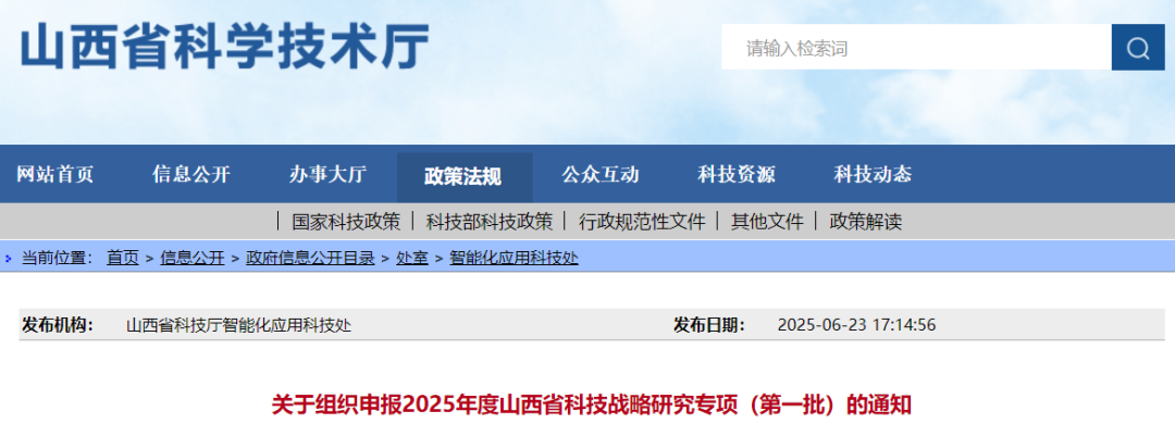 为进一步发挥省科技战略研究专项战略咨询和决策支撑作用,现将2025年度山西省科技战略研究专项(第一批)项目申报有关事项通知如下。