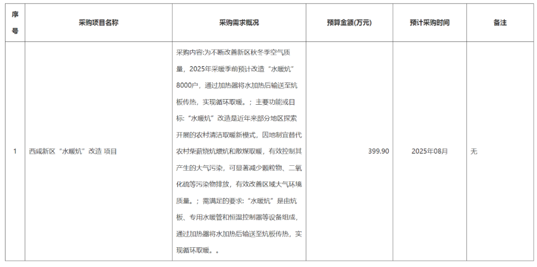 合同履行期限:2025年9月底前完成设备安装运营,提供中标后10个供暖季的设备运行维护工作