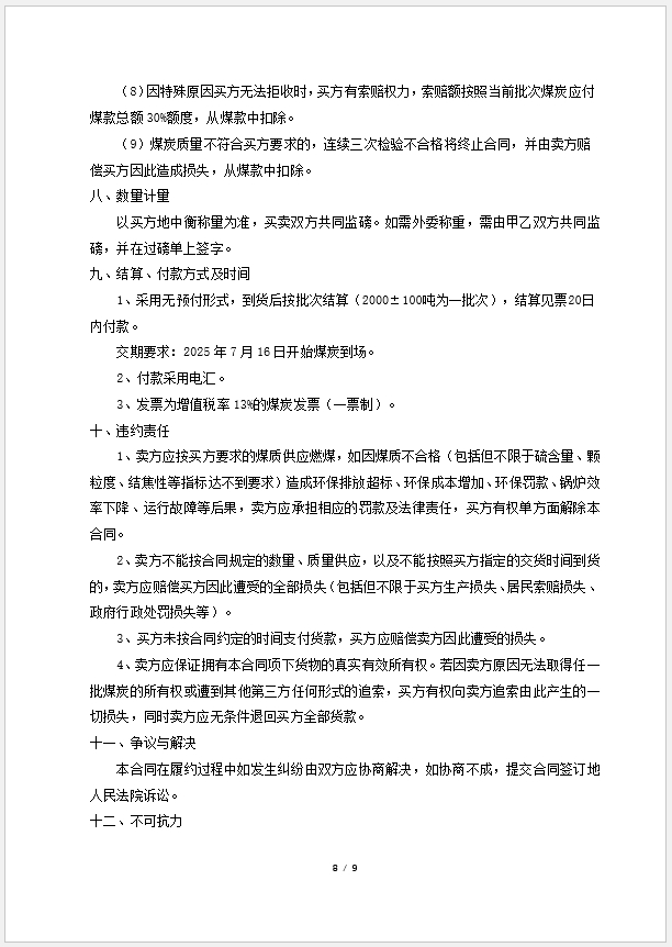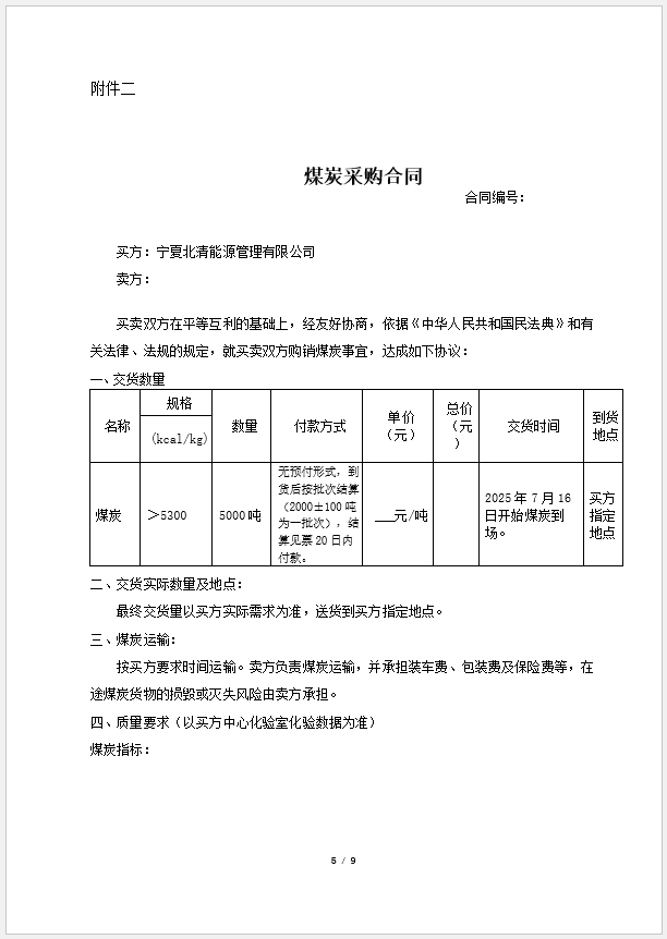 交期要求:2025年7月16日开始煤炭到场。