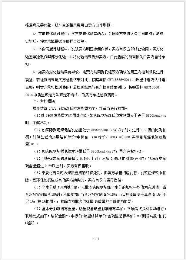 ● 设立指标考核条款。煤炭检验数据以买方化验室出具的检验报告为准。详见合同。