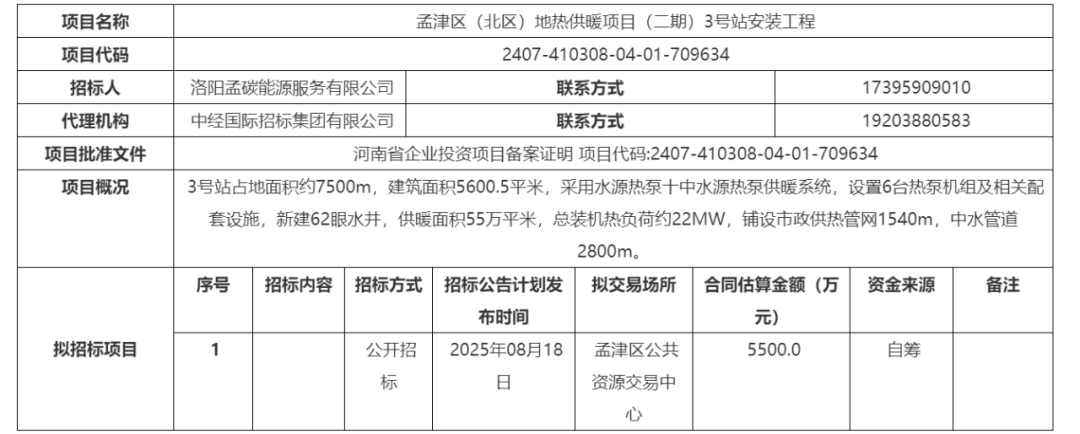 孟津区(北区)地热供暖项目(二期)3号站安装工程