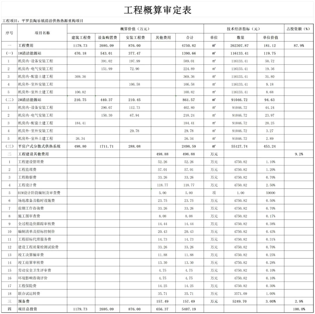 项目概算总投资5407.19万元,其中:工程费用4750.82万元,其他费用498.88万元,预备费157.49万元。
