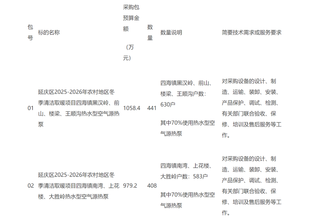 延庆区2025-2026年农村地区冬季清洁取暖项目公开招标公告