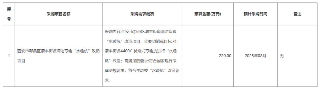 西安市鄠邑区渭丰街道办事处2025年08月政府采购意向