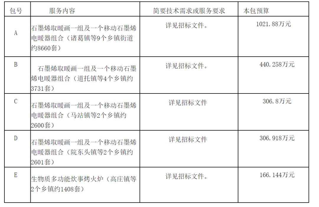 简要规格描述或项目基本概况介绍、用途: 本次采购共一包,3777户电暖器采购等,供应商所投内容必须完全响应招标文件所列内容。具体报价范围、采购范围及所应达到的具体要求,以招标文件中商务和技术的相应规定为准。