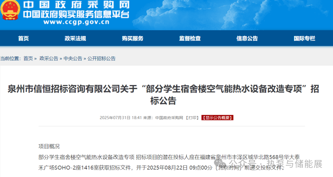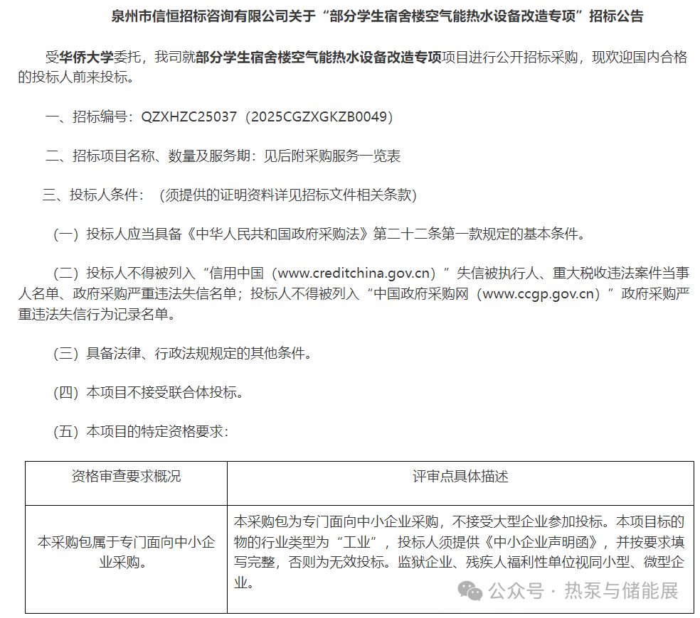 项目名称:部分学生宿舍楼空气能热水设备改造专项