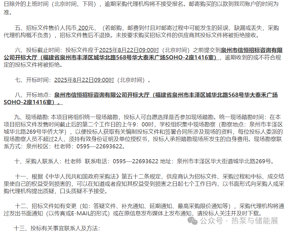 方式:招标文件发售时间(即购买招标文件时间及报名时间):即日起至2025年8月7日下午18:00时止,节假日除外的上班时间(北京时间,下同),逾期采购代理机构将不接受报名。邮寄购买的以款到我司账户的时间为准。 招标文件售价人民币 200元,(若邮购,邮费到付且对邮寄过程中可能发生的延误、缺漏或丢失,采购代理机构概不负责),招标文件售后不退换。未按要求购买招标文件的供应商其投标文件将被拒绝接收。