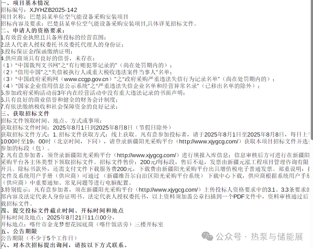 巴楚县某单位空气能设备采购安装项目(三次)公开招标公告