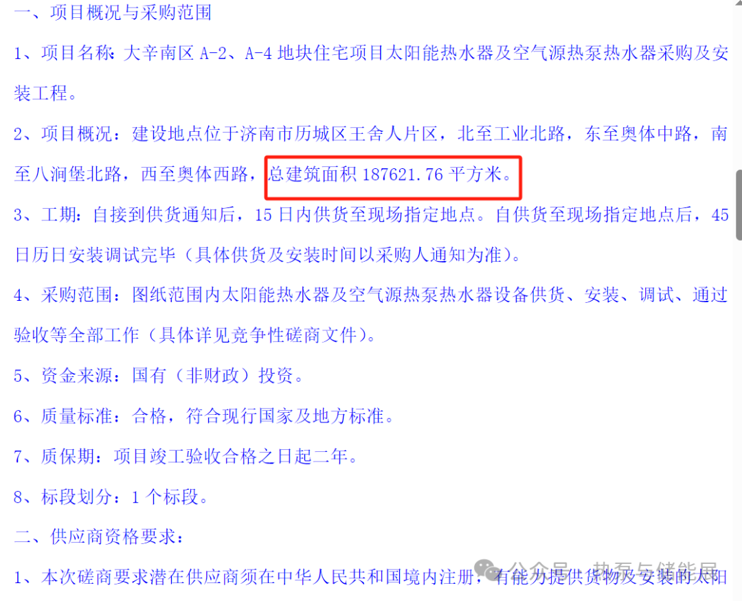 2.2规模:河南省郑州市惠济区碧桂园天澜小区总建筑面积13.97万平方米,本项目负责热源、一级管网和供热站房设施建设,小区内二次管网不包含在本标段范围内。根据可研报告,本项目拟采用中深层地埋管能源系统+浅层岩土储热系统,计划钻探中深层地热地埋管有效井2口(垂深约2500m以上,具体数量以初步设计为准)、浅层岩土储热井55口(井深300m以上,具体数量以岩土热响应试验结果为准),完成一次管网、智能热网控制系统、能源站机房、离心或磁悬浮热泵机组等设备的采购及安装。