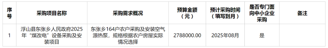 1、项目内容:古县旧县镇 2025年“煤改电”设备采购及安装项目,总计160户。主要为空气源热泵及热泵热风机的采购与安装。