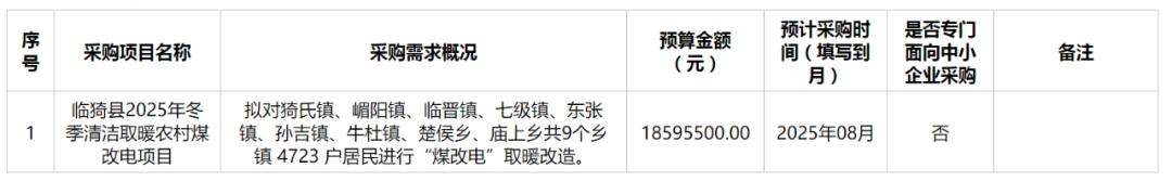 古县旧县镇2025年“煤改电”设备采购及安装项目入围项目