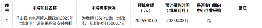 为便于供应商及时了解政府采购信息,根据《财政部关于开展政府采购意向公开工作的通知》(财库〔2020〕10号)等有关规定,现将浮山县响水河镇人民政府2025年8月采购意向公开如下: