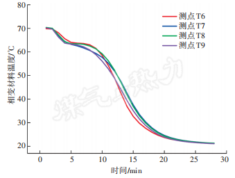 ③ 取热实验:进水温度越低,相变材料降温速率越快。增大换热流体质量流量对提高相变材料降温速率作用不大。