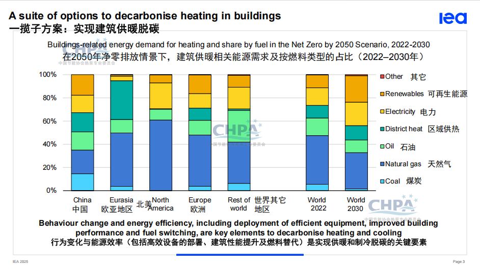 2023年,在建筑领域,建筑物的建造与运行成为了二氧化碳排放的主要来源,其排放量占全球总排放的26%,同时,建筑领域的能耗也占终端能源消费的28%。在过去的几年,在节能减排方面,我们取得了一些进展,一是可再生能源应用规模和电气化程度的不断扩大,二是清洁供暖(特别是热泵)的渗透率不断提升,三是建筑领域的规范与法规的日益完善,最后是空调系统的能效也在不断提升,同时能效标准也越来越严格。但是,目前虽然我们取得了一些进展,但相对来说这些进展是比较缓慢和碎片化的,距离达到近零排放和气候目标仍有一段距离。