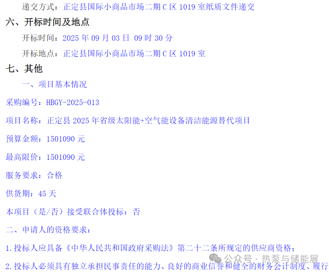 1.项目概况:采购及安装150L空气能热水器115套、300L空气能热水器9套。