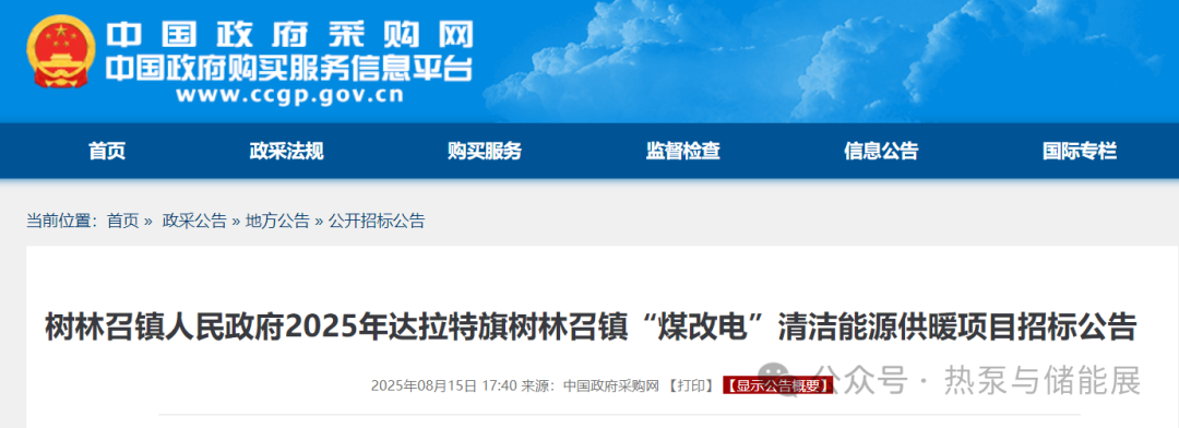项目名称:2025年达拉特旗树林召镇“煤改电”清洁能源供暖项目