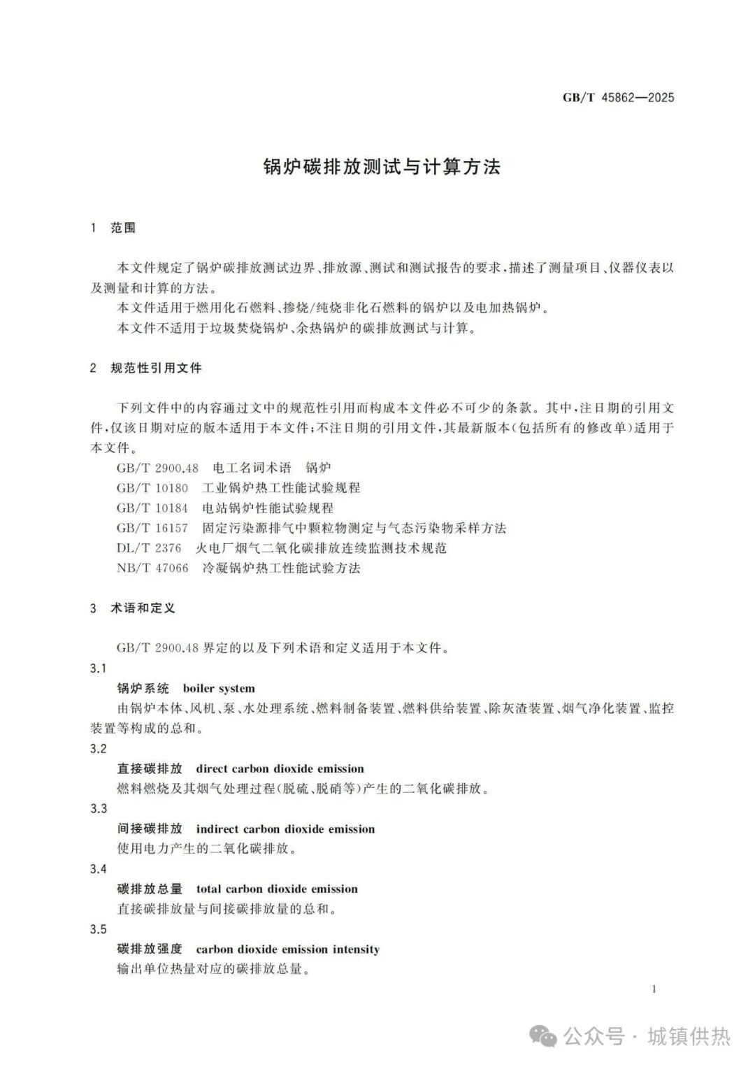 国家标准《锅炉碳排放测试与计算方法GB/T45862—2025》自2026年2月1日起实施。