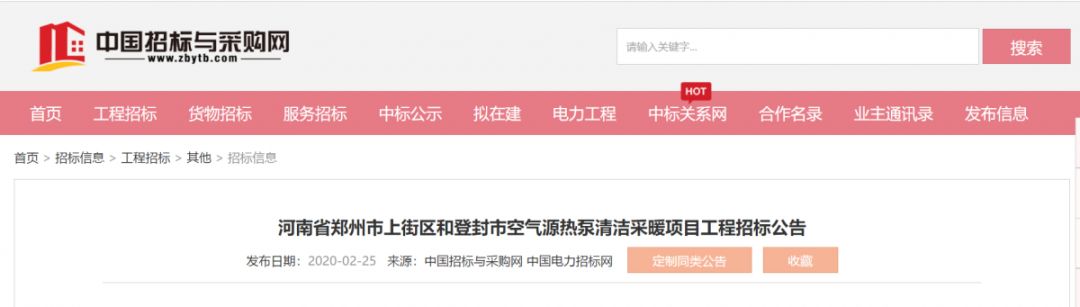 项目名称:河南省郑州市上街区和登封市空气源热泵清洁采暖项目工程