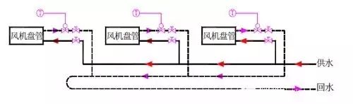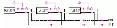 (1)根据风量:房间面积、层高(吊顶后)和房间气体循环次数三者的乘积即为房间的循环风量。其对应的风机盘管高速风量,即可确定风机盘管型号。(2)根据冷负荷:根据单位面积负荷和房间面积,可得到房间所需的冷负荷值。利用房间冷负荷对应风机盘管的中速风量时的制冷量即可确定风机盘管型号一般采用第二种方法——根据冷负荷选择风机盘管,在特殊场合如对噪音要求较高的场所,可用第一种方法进行校核。确定型号以后,还需确定风机盘管的安装方式(明装或安装),送回风方式(底送底回,侧送底回等)以及水管连接位置(左或右)等条件。房间面积较大时应考虑使用多个风机盘管,房间单位面积负荷较大,对噪音要求不高时可考虑使用风量和制冷量较大的风机盘管。注意:对于风管超过一定长度的风盘,应采用中、高静压的风盘,且出风管道上不宜多于两个出风口。