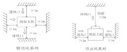 2. 当两台或两台以上机主同时并列安装时候,主机与主机之间间距应不小于700mm,需留有维修空间。3.主机搬运、吊装时,应注意保持垂直,需倾斜时,倾斜角应小于45度,并注意主机在搬运、吊装过程中的安全;4. 主机安装高度,要求主机底部应高于地面或板面(屋面)150~250mm;可直接用膨胀螺栓固定在水泥机座上,也可用型钢制成钢托架,加防震橡胶垫置于地面或板面(屋面),并确保机组水平放置。