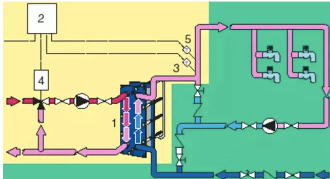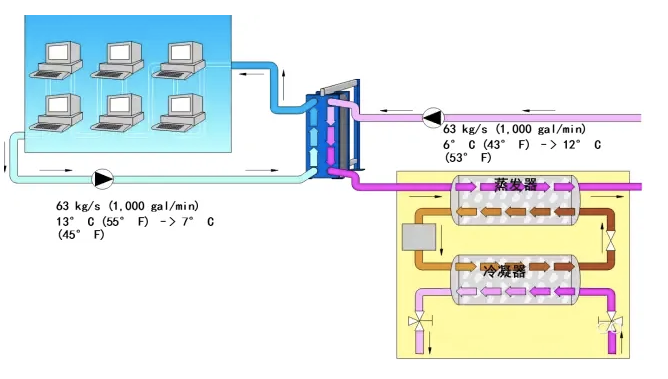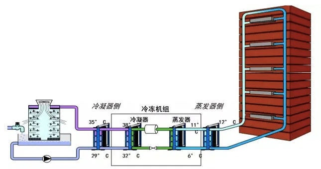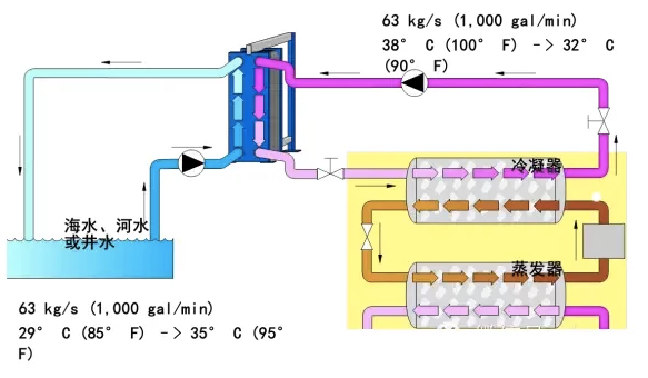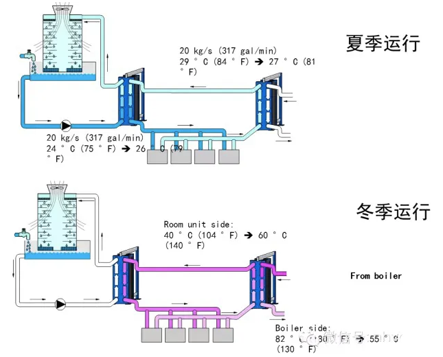 2 热电联产系统 3 地热水供暖系统 4 即热式生活热水系统 即热式特点:可保证用户随时随地均有热水供应,系统紧凑,无需储罐,需要较大的锅炉容量需要较大的热交换器。 5 半即热式生活热水系统 半即热式特点:需要较小的锅炉容量,需要较小的热交换器,储罐内易生长细菌,需要额外的地方安放储罐。 6 游泳池恒温保持系统 7 太阳能热水系统 8 供冷空调系统 冷凝器侧应用: 1 冷却塔水冷却凝结水 2 海水、河水或井水冷却凝结水 3 乙二醇冷却凝结水 4 短路冷冻机组系统 5 地下水冷/热源系统 6 热回收系统 冷凝水侧热交换器可以起到以下作用:保护冷凝器免受污染、结垢和腐蚀;代替冷凝器承受冷却水侧压力;能够在季节许可时不运行冷冻机组;能够实现热回收;节省昂贵的添加剂。 9 冷却塔水冷却凝结水 10 海水、河水、或井水冷却凝结水 11 乙二醇冷却凝结水 12 短路冷冻机组系统 13 地下水冷/热源系统 14 热回收系统 蒸发侧的应用: 1 压力接力系统 2 分离冷却循环水 (无压力接力功能) 3 蓄冰系统 4 区域供冷系统 5 天花板供冷系统 蒸发器侧热交换器可以起到以下作用:避免冷冻机组承受高压(压力接力系统);减少昂贵、低效添加剂的用量;分离冷却水系统,以保证局部系统清洁度很高(电子元件生产);减少泄漏所带来的损害。 15 压力接力系统 16 分离冷却循环水系统 17 蓄冰系统 蓄冰系统设计基本要素:设定空调要求;运行方案;全蓄冰系统;部分蓄冰系统;冷冻机组为主系统;蓄冰为主系统。 18 区域供冷系统 19 天花板供冷系统 20 空调系统其它应用方案 板式换热器在供冷空调系统中的优势: 1. 传热系数高,对数温差可作到0.5度。 2. 体积小,重量轻,便于安装,可放置于设备层。 3. 易于拆卸,方便清理内部污垢。 4. 结构坚固,可承受较高工作压力,最高 3.0MPa。 5. 换热效率高,降低运行成本。 6. 固定投资低。 21 板式换热机组基本原理 流经用户散热片后的低温水(二次回水)经过滤器除污后,由循环泵加压进入换热器,吸收一次热媒放出的热量,达到供水设定温度后,再流向供热管网对用户进行供热 热源经一次热网(一次水)流经过滤器、调节阀、进入换热器放热后(二次水),由热媒回水管返回热源(二次回水)被加热后再次参与循环换热;补水泵根据系统运行情况适时对二次循环水系统进行定压补水。