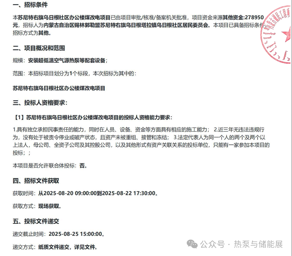 招标范围及内容: 低温空气源热泵机组、机房专用空调