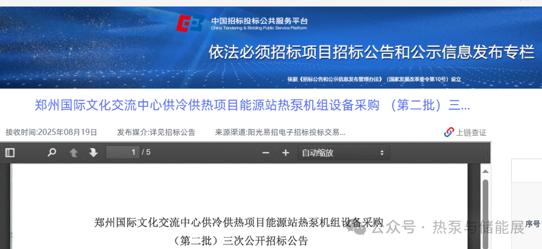 本招标项目郑州国际文化交流中心供冷供热项目能源站热泵机组设备采购(第二批)(三次),招标人为郑州郑沣能源发展有限公司。项目资金已落实,已具备招标条件,现对该项目进行公开招标,欢迎符合条件的投标单位参加。