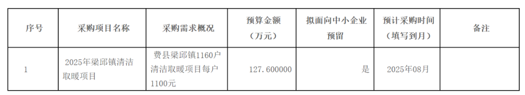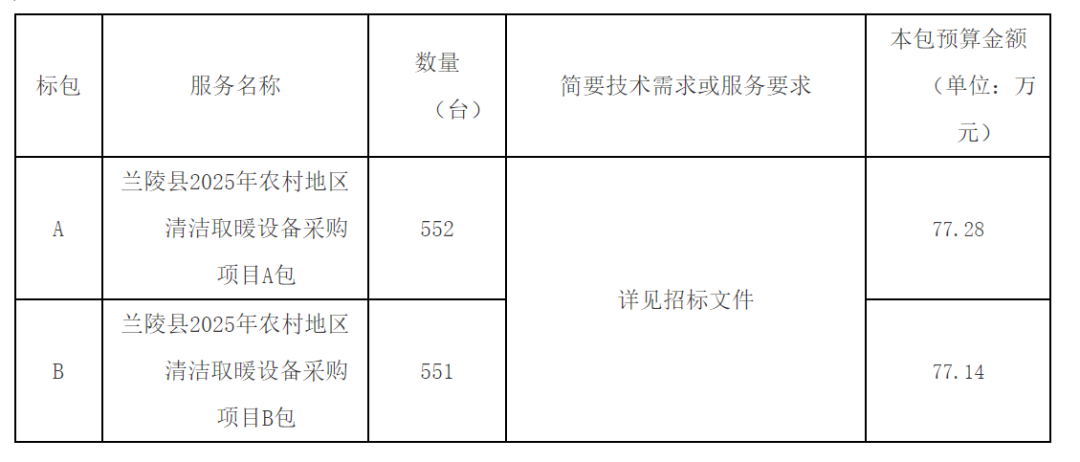 兰陵县2025年农村地区清洁取暖设备采购项目招标公告