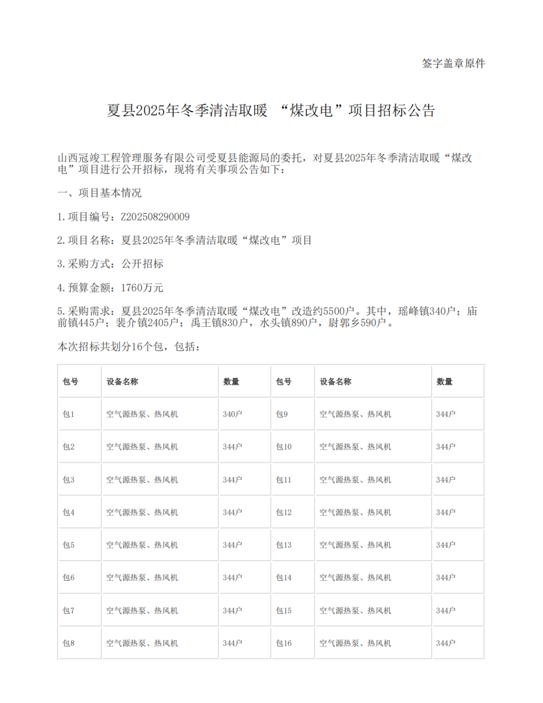 夏县2025年冬季清洁取暖“煤改电”项目招标公告