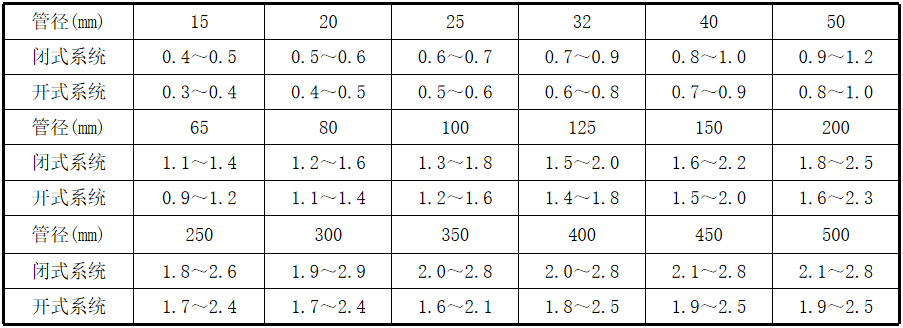 压力水管的水流速主要是经济和噪声两个因素。管内的水速太大,对环路的平衡不利,故总管流速可以取得大一些,而分支管路可以小一些。