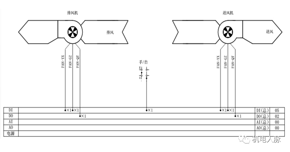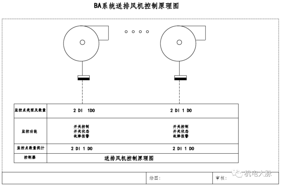 送排风系统包括各类送排风机,人防、消防专用通风设备不在BAS监控范围之列。BAS一般对送风机、排风机及排烟兼排风机进行控制,自动监测各个送排风机的运行状态、故障报警和手自动开关状态。根据事先设定时间表,定时启停送排风机或者遥控启停。实时监测车库内一氧化碳、二氧化碳浓度,浓度超过设定报警值时开启送排风机
