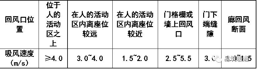 1 人员活动区域的送风速度应低于上送风方式,可参照表 5.4.l1-1确定;2 人员长期停留的区域采用置换通风方式时,人脚踝处风速不宜超过 0.2m/s;3 人员活动区域的送风温差应小于上送风方式,且宜满足 5.4.16的要求;4 置换通风方式的人员头脚处空气温差,不应大于3℃ 。5.4.11 送风口的出口风速,应根据建筑物的使用性质、对噪声的要求、送风口形式及安装高度和位置等确定,可参照表 5.4.11-1及 5.4.11-2的数值 。表 5.4.11-2散流器颈部最大风速 (m/s)5.4.12.回风口和排风口的位置,应根据对人员活动区且应符合下列要求:1、不应设在送风射流区和人员经常停留的地方;采用侧送时,回风口宜设在送风口的同侧下方;2、房间高度较大且冬季送热风时,或采用孔板送风和散流器向下送风时,回风口宜设在房间下部;3、以夏季送冷风为主的空调区域,当采用顶部送回风方式时,顶部回风口宜与灯具相结合;4、建筑顶层、或吊顶上部存在较大发热量、或吊顶空间较大时,不宜直接从吊顶回风;5、有走廊的多间空调房间,有条件时,可采用走廊回风,但走廊断面风速不宜过大;6、采用置换通风方式时,回风口应置于活动区高度以上,排风口应高于回风口。5.4.13回风口的风速,可按表5.4.13选用;当房间内噪声标准要求较高时,回风口风速应适当降低 。5.4.14 有空调系统和机械排风系统的建筑物,其送风口、回风口和排风口的设置应有利于维持房间内所需要的空气相对静压值:1 除医院传染病房等有特殊要求的房间外,建筑物内的空调房间应维持正压;2 建筑物内的厕所、盥洗间及散发气味、有害气体或温度较高的设各用房等应维持负压 ;3 餐厅的前厅应维持正压,厨房应维持负压,餐厅内的空气压力应处于前厅和厨房之间。5.4.15 医院洁净手术室的气流组织应遵守 《医院洁净手术部建筑技术规范》GB50333的有关规定。5.4.16 空调房间夏季总送风量,应能消除室内最大余热和余湿 ,按室内最大冷负荷及送风焓差确定。在满足舒适的条件下,应尽量加大夏季送风焓差 ,但送风温差宜符合下列要求 :2 2m<送风口高度≤5m时,送风温差宜≤ I0℃;