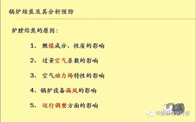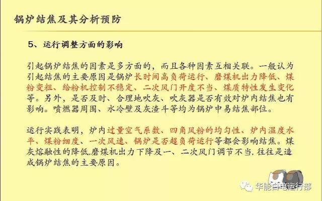 引起锅炉结焦的因素是多方面的,而且各种因素互相关联。一般认为引起结焦的主要原因是锅炉长时间高负荷运行、磨煤机出力降低、煤粉变粗、给粉机控制不稳定、频繁地投人燃油火嘴助燃、二次风门开度不当、煤质特性发生变化等。