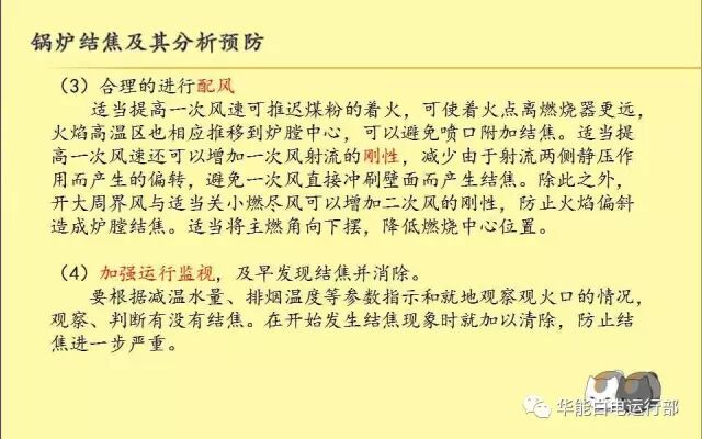 6、 加强运行监视, 及早发现结焦并消除在运行过程中。要根据仪表指示和实际观火口的情况,观察、判断有没有结焦。一方面消除结焦的根本原因,另一方面在开始发生结焦现象时就加以清除。