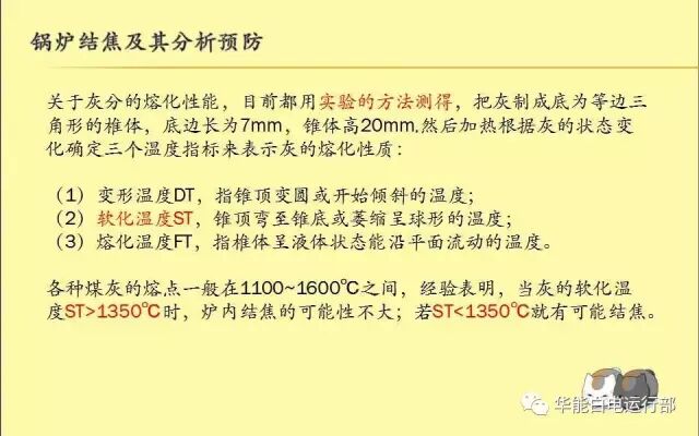 各种煤灰的熔点一般在1100~1600℃之间,经验表明,当灰的软化温度ST>1350℃时,炉内结焦的可能性不大;若FT<1350℃就有可能结焦。