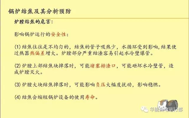 炉内结焦后,炉膛出口烟温上升引起过热汽温升高,而过热器、再热器结焦会加大热偏差,导致高温过热器、高温再热器超温爆破。当锅炉结焦严重,大焦突然落下时,还有可能造成灭火,甚至砸坏水冷壁管子,造成恶性事故。