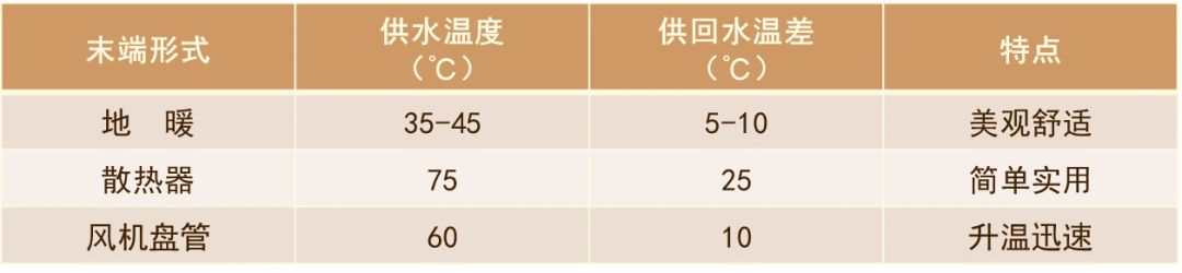 空气源热泵出水温度一般可达到45℃,温差5℃,所以,最适合空气源热泵的供暖末端形式是地暖。