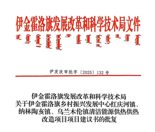 伊金霍洛旗5846.43万煤改电项目批复! 一、项目名称 红庆河镇、纳林陶亥镇、乌兰木伦镇清洁能源供热供热改造项目。 二、建设地址 伊金霍洛旗红庆河镇、纳林陶亥镇、乌兰木伦镇。 三、建设规模 本项目对红庆河镇 24个村、纳林陶亥镇13个村、乌兰木伦镇6个村2310户常住农牧户实施清洁能源供暖改造,改造总面积 290182平方米,改造内容包括拆除居民散烧小煤炉,安装空气源热泵采暖系统。 四、项目总投资及资金来源 项目总投资为5846.43万元,资金来源为上级资金、地方政府配套资金和居民自筹。建设年限:2026年一2028年。