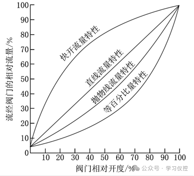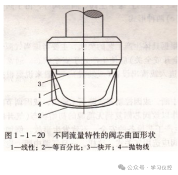 调节阀流量特性曲线和阀芯形状示意图
