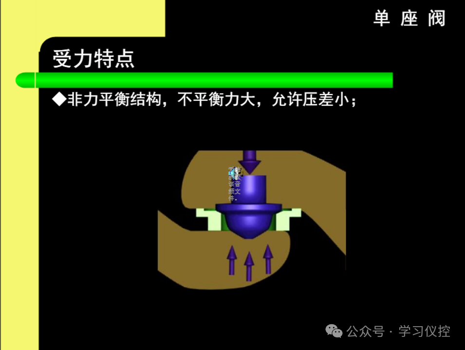 调节机构主要由阀芯和阀座组成,实际上是一个局部阻力可以改变的节流元件。阀杆上部与执行机构相连,下部与阀芯相连。由于阀芯在阀体内移动,改变了阀芯与阀座之间的流通面积,即改变了阀的阻力系数,被控介质的流量也就相应地改变,从而达到控制工艺参数的目的。
