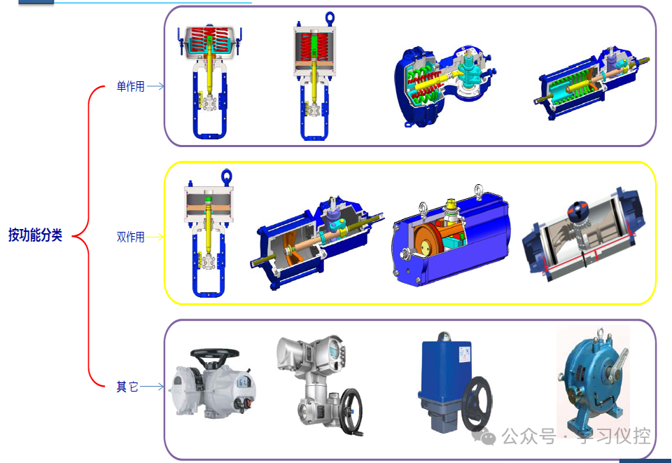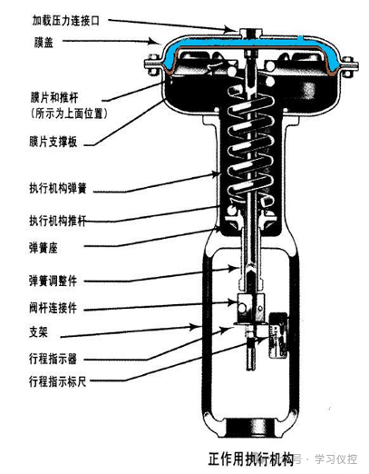 调节阀由执行机构和调节机构两部分组成,其中执行机构是调节阀的推动部分,调节机构是调节阀的调节部分。我们主要介绍气动执行机构的相关内容。