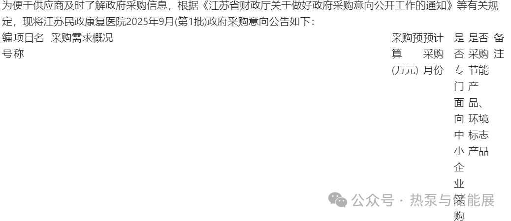 江苏民政康复医院2025年9月(第1批)政府采购意向公告