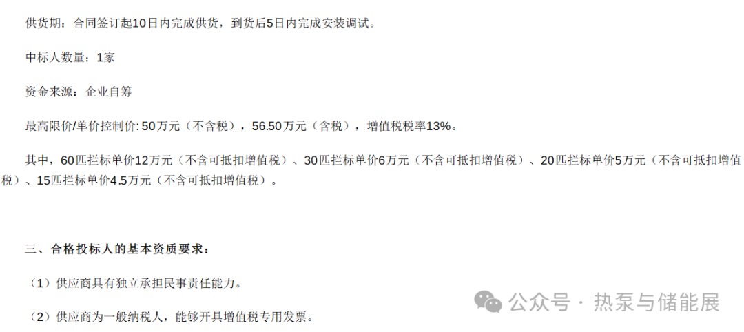 (4)工程内容及规模:完成104车间安装空气能项目,本工程为交钥匙项目,完成招标人秦皇岛烟机公司新建104车间环境改善项目,结合现场实际情况及招标文件内的工作量进行设计、采购、施工包括但不限于:本次工程所需采购内容包括但不限于超低温空气源热泵机组3台、射流机组18台、循环水泵2台、定压补水系统1套、水箱1台,软水器1套、主机及循环水泵设备的槽钢基础、射流机组的支架、电控柜、系统附属阀门、各类管路安装及调试,相关费用均在投标报价中。其中现场垃圾清运、现场安全管理及文明施工、技术资料准备等与本项目相关的内容。项目报价要充分考虑施工难度及风险,报价要包含现场采购、安装、调试、培训、验收、技术资料和现场技术服务费,即全部的设备(材料)交付至工程工地现场所发生的一切费用。