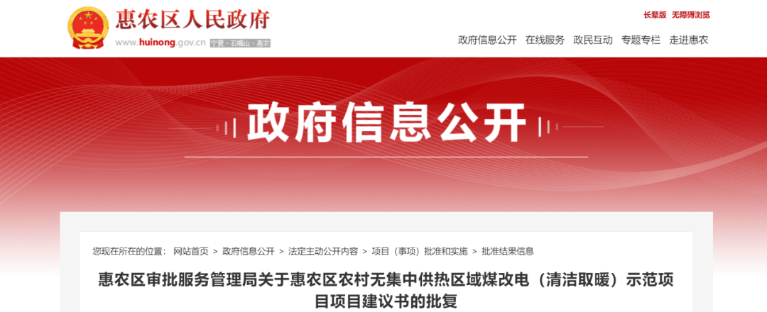 你单位报来《惠农区住房城乡建设和交通局关于惠农区农村无集中供热区域煤改电(清洁取暖)示范项目项目建议书的申请》(惠住建交通函〔2025〕32号)及其附件收悉。经研究,同意该项目建议书(项目代码2509-640205-16-02-928655)。现将相关事宜批复如下: