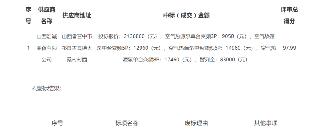 介休市2025年“煤改电”清洁取暖改造项目(第二批)公开招标结果公告