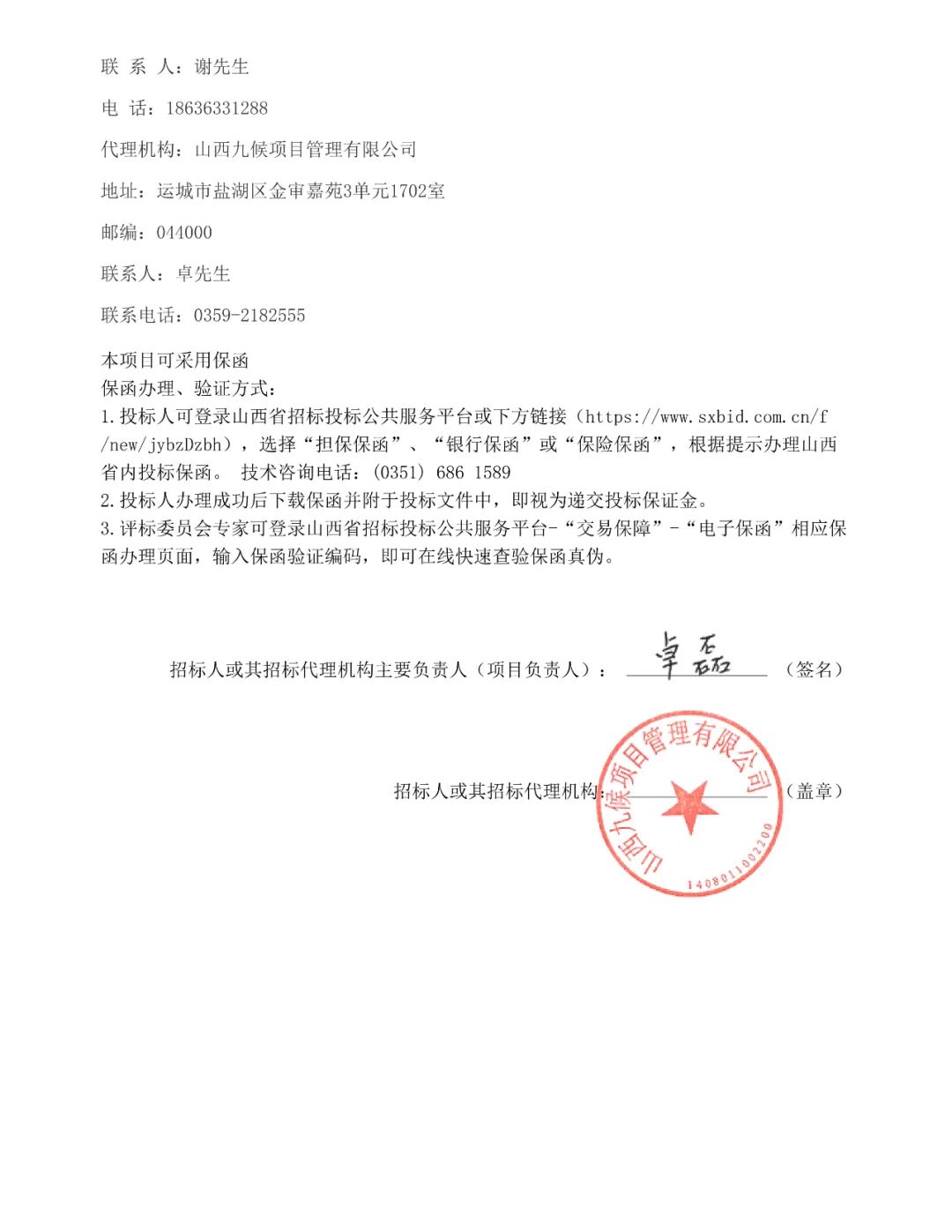 项目联系人:森诚招标部