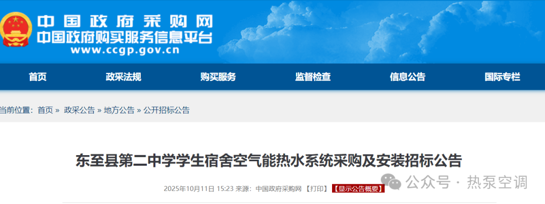 项目名称:东至县第二中学学生宿舍空气能热水系统采购及安装