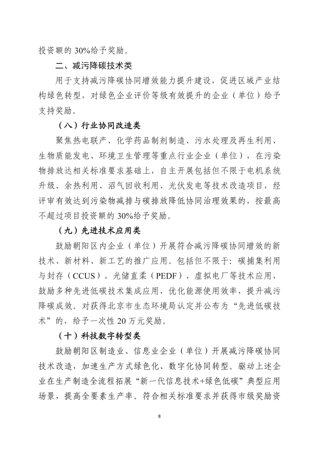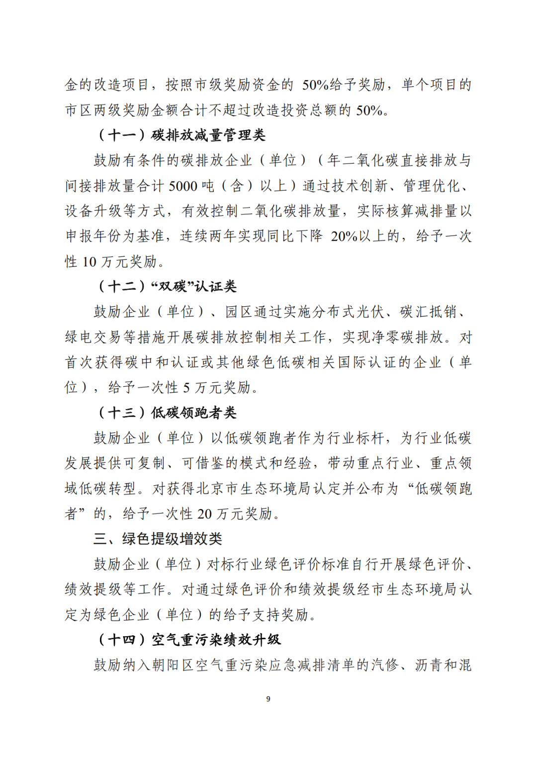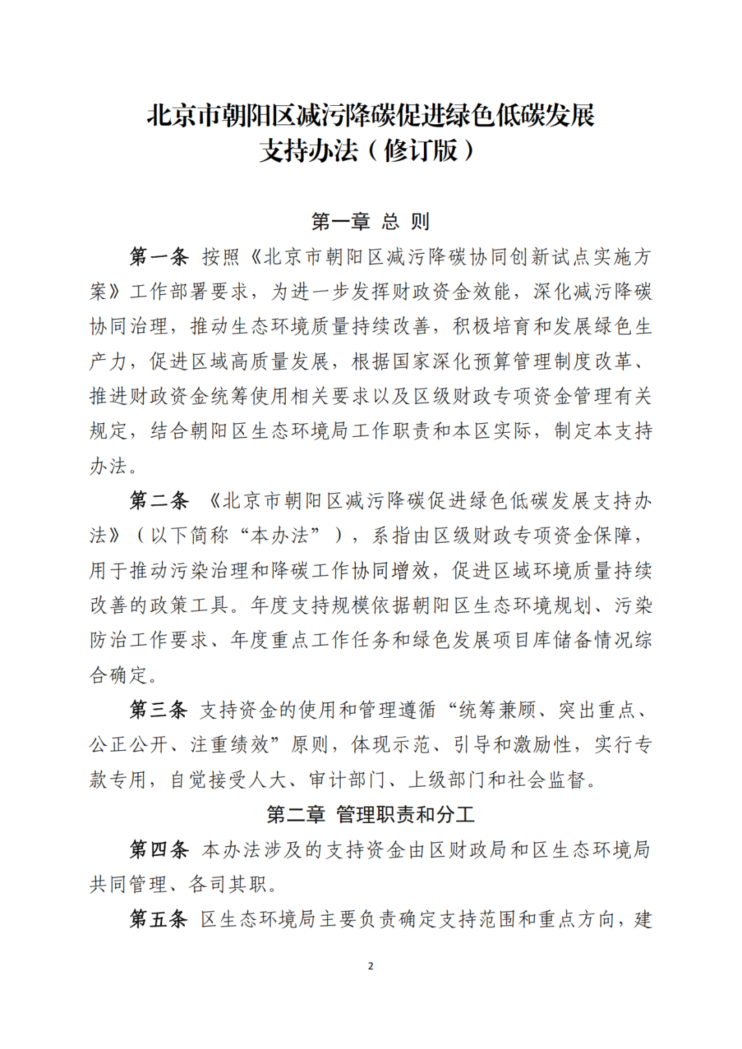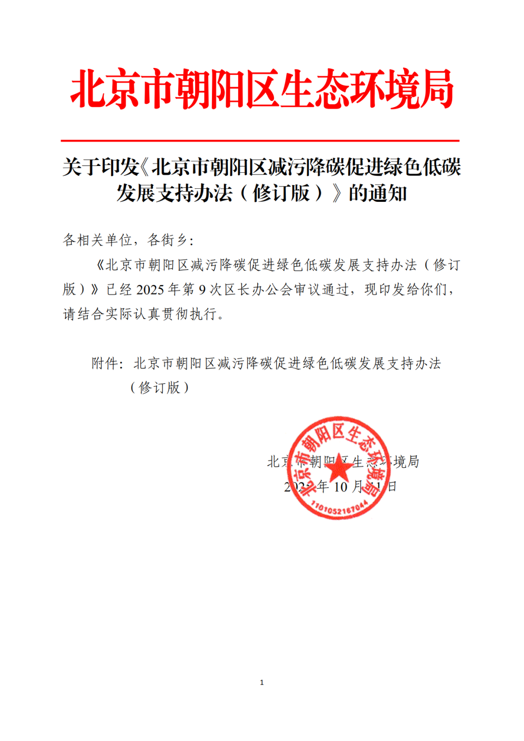 近日,朝阳区人民政府发布关于印发《北京市朝阳区减污降碳促进绿色低碳发展支持办法(修订版)》的通知。通知指出,