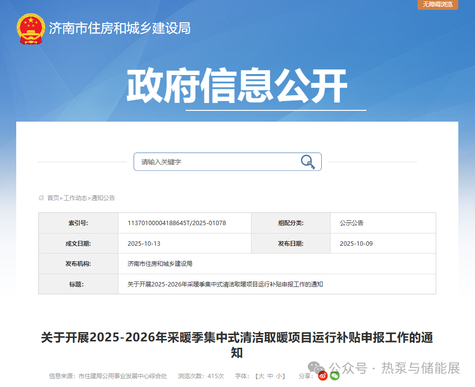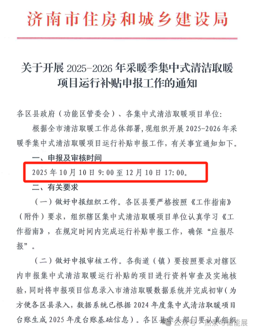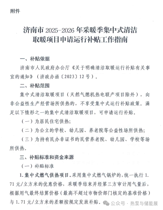 济南2025-2026年采暖季集中式清洁取暖项目运行补贴